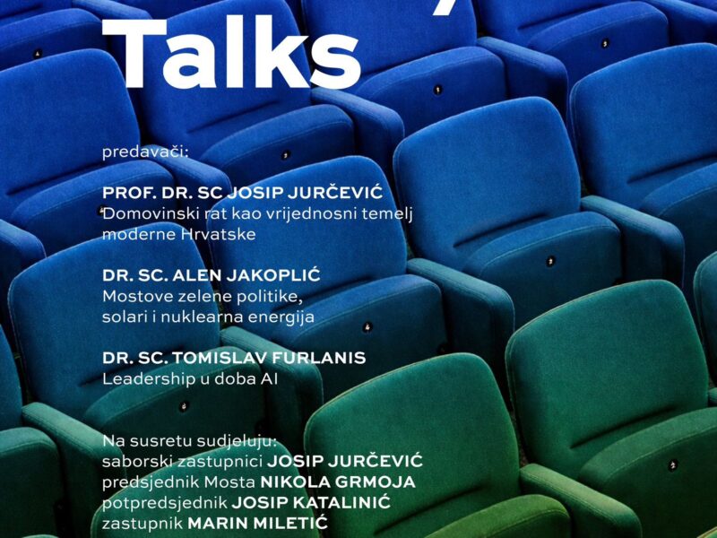 U sklopu projekta MOSTly održali smo i tri predavanja stručnjaka za određena područja: umjetne inteligencije, energetike i povijesti. Dr. sc. Tomislav Furlanis imao je predavanje o umjetnoj inteligenciji i vodstvu u tom dobu. Doktor energetike Alen Jakoplić je govorio o obnovljivim izvorima energije s fokusom na solare, baterije i nuklearnu energiju. Profesor Josip Jurčević, naš saborski zastupnik i dragovoljac Domovinskog rata je govorio o Domovinskom ratu kao o temelju naše demokracije i slobode.